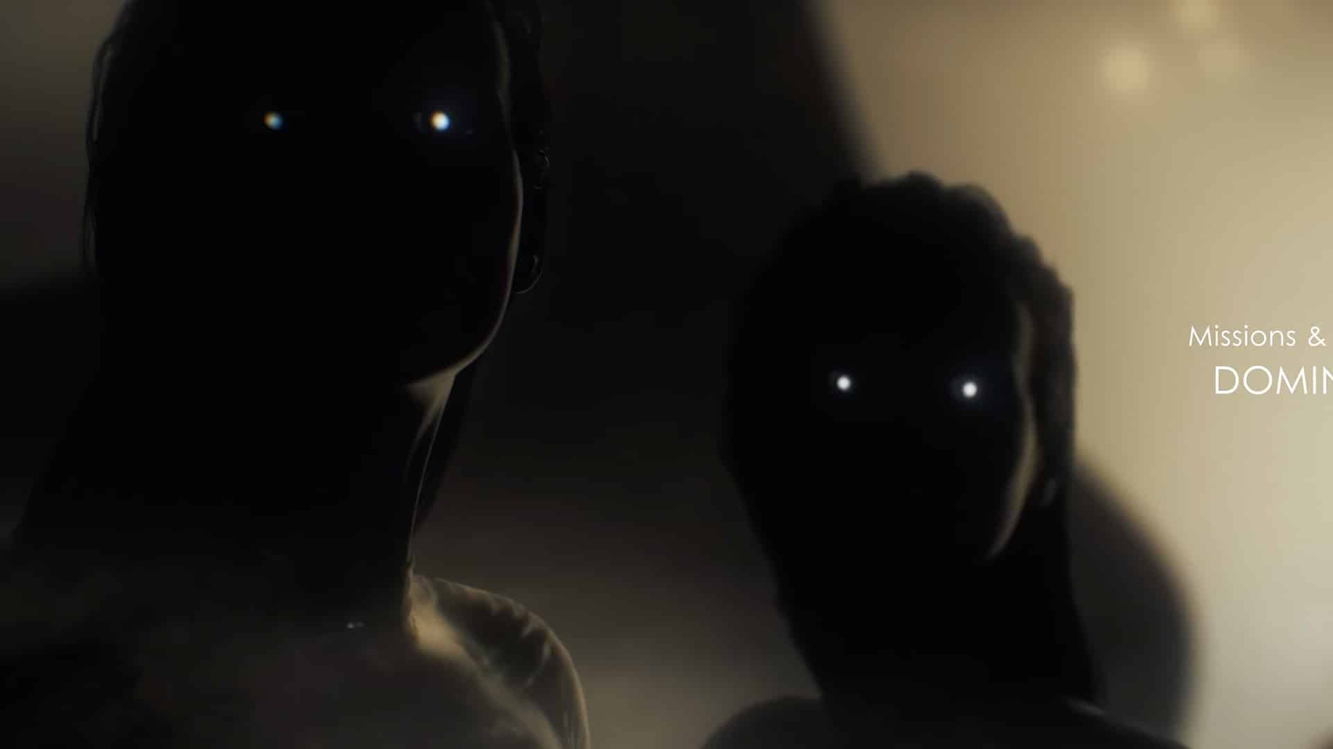In 007 First Light, by contrast, the unsettling quality of the figures seems much more central to their presence. Combined with the glowing eyes and the distant, watchful staging, the effect becomes subtly disturbing — as if we were looking at figures who appear human, yet remain strangely unreadable.